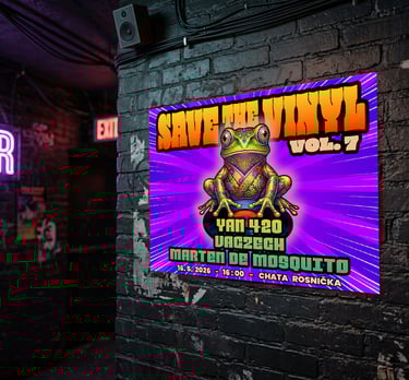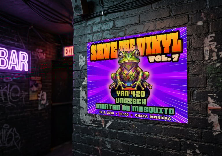 Promo kampaň pro sérii večerů zaměřených na vinylovou selekci. Výrazná neonová barevnost a hravá ilustrace na mockupu fasády klubu podtrhuje autentickou a energickou atmosféru akce.