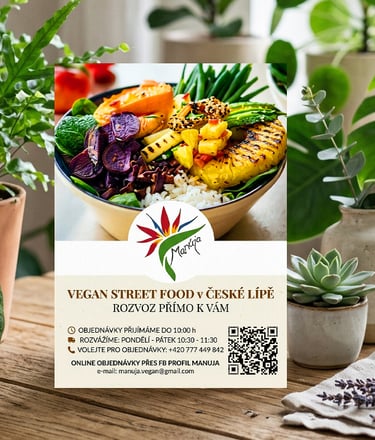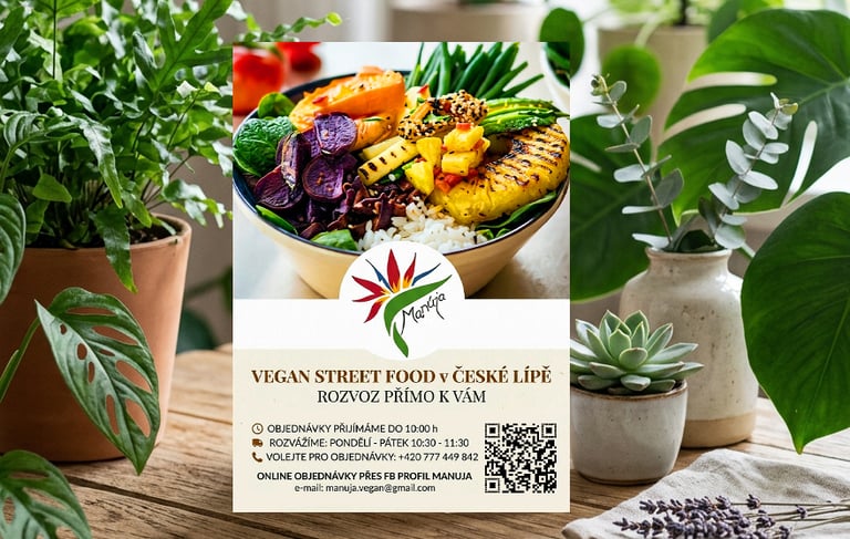Vizuál určený pro sociální sítě a tisk, který komunikuje provozní dobu a kontaktní údaje rozvozu. Důraz je kladen na čitelnost důležitých informací a barevné sjednocení s logem Manúja tak, aby celek působil kompaktně a lákavě.