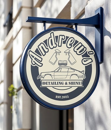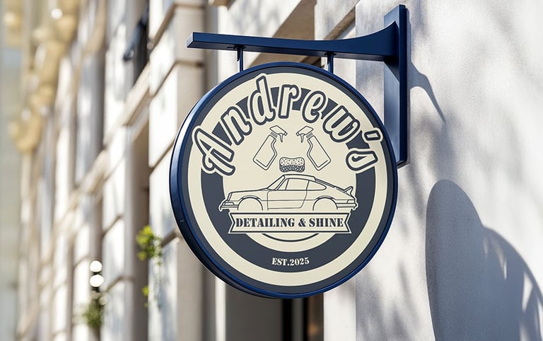 Zakázka pro Andrew´s detailing & shine. Ukázka loga v reálném prostředí. Čistá práce s linkou a vyvážená typografie, která dává automotive byznysu jasnou tvář. Cílem bylo vytvořit funkční vizuální systém, který bude fungovat stejně dobře na webu i na fyzické reklamě.